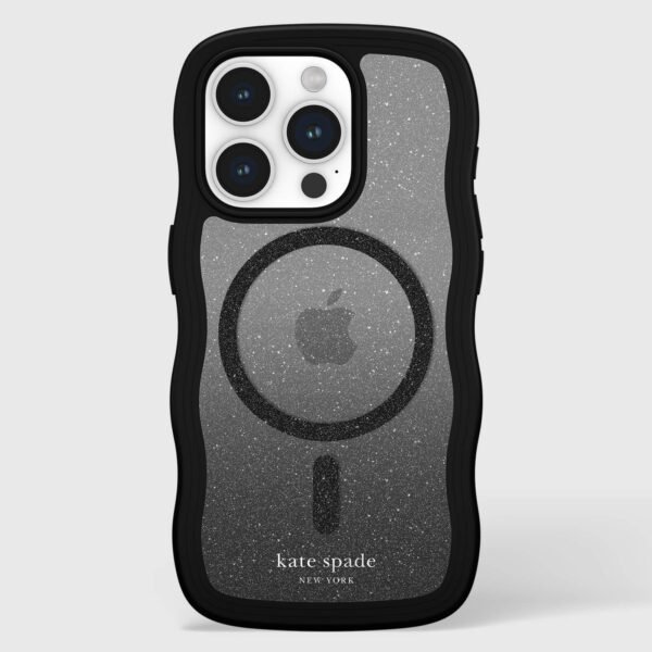kate spade new york Wavy MagSafe Phone Caseは、ユニークなウェーブデザインとブラックグリッターのオンブレーで、ミラーセルフィーに楽しいタッチを加えます!マグネットが内蔵されているので、ワイヤレスで充電したり、アクセサリーをつけたりできます。